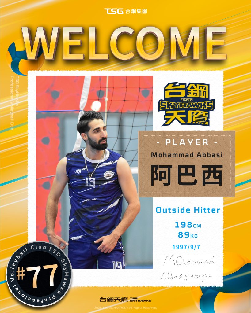台鋼天鷹今(13)日正式宣布,來自伊朗的主攻手阿巴西(Mohammad Abbasi)加盟,成為球隊本賽季陣容的最後一塊拼圖,為新賽季注入國際級火力與豐富比賽經驗。