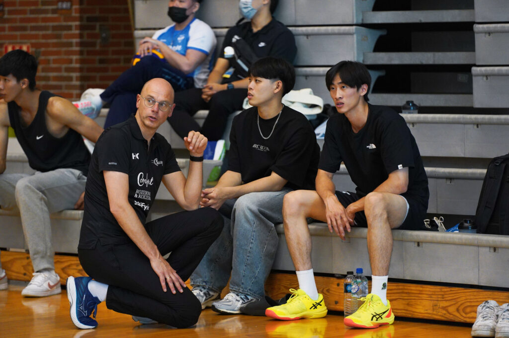 在台鋼天鷹職業排球隊首次公開測試會的現場,我們捕捉到一位身影格外忙碌的身影──來自荷蘭的翰克(Henk Gootjes)教練。他不僅親自觀察每一位球員的表現,還不時低頭記錄,時而與教練團成員低語討論。儘管語言不同,他卻用敏銳的觀察力與豐富的經驗,試圖從二十多位參與測試的選手中找出能夠成為天鷹一員的「關鍵拼圖」。